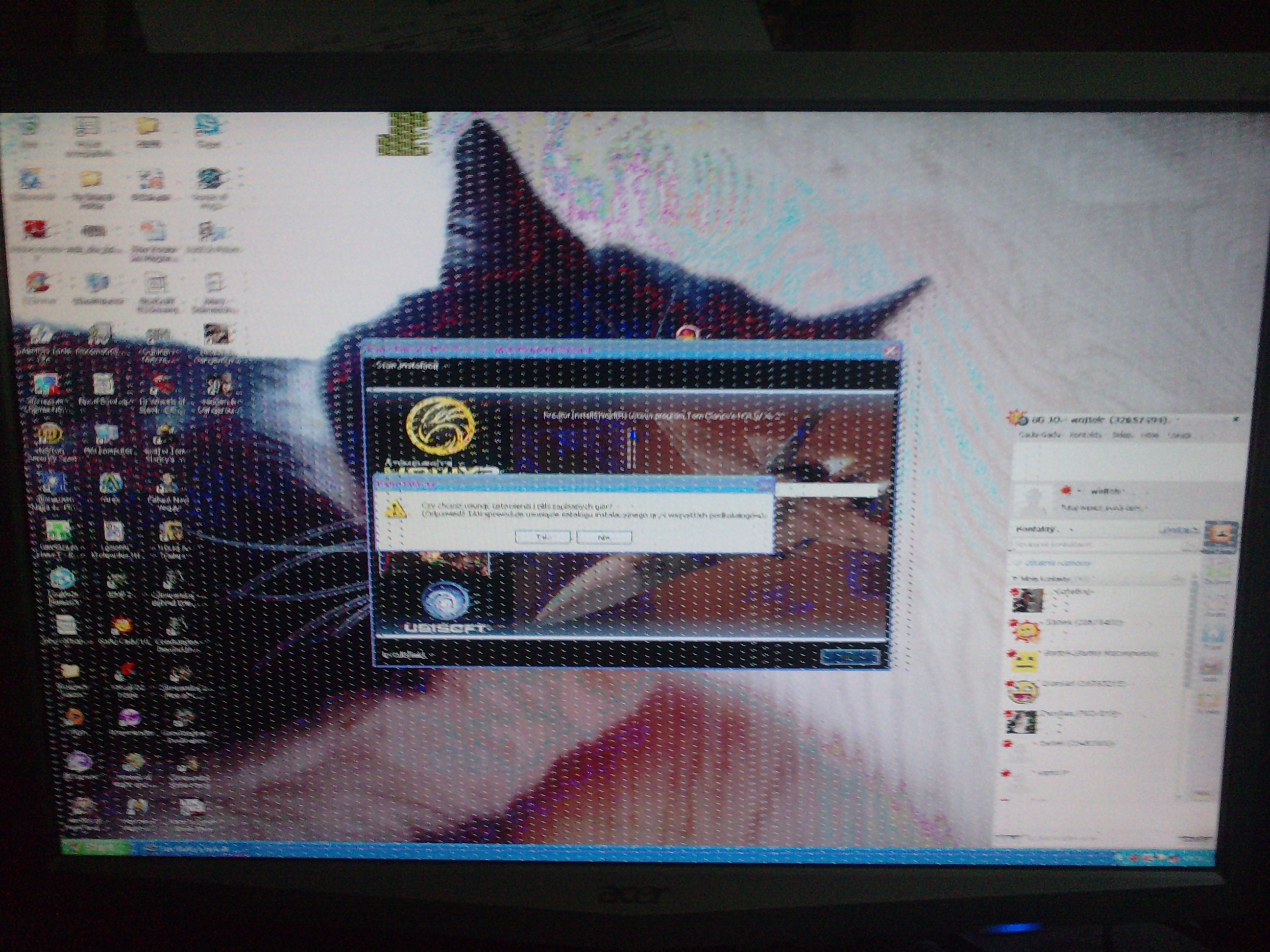 Od dłuższego czasu mam pewien problem. Wcześniej występował on notorycznie, więc stwierdziłem, że to wina jakiegoś wirusa. Przeskanowałem MalwareBytes, YacCleaner, CCleaner, Avast i nic nie wykazało. Chodzi o problem z ekranem podczas gier. Wcześniej następował on po 15, a teraz po 7 minutach gry. Monitor zaczyna trzeszczeć, a właściwie wszystko tak się dziwnie szybko rozpierdziela na wszystkie boki i lata. Trwa to od 4 do 6 sekund, a potem ekran miga(włącza, wyłącza, włącza, wyłącza), znowu trzeszczy i tak z 5 razy, a potem gra zostaje zamrożona, dźwięk trzeszczy, komputer sam się resetuje i po resetowaniu i zalogowaniu się do użytkownika czasem występuje komunikat, że "System Windows odzyskał sprawność po nieoczekiwanym zamknięciu.". Dodam, że problem w niektórych grach nie występuje [Team Fortress, LoL(tylko na małej rozdzielczości), WoW Gothic 1, 2, Noc kruka, itp.] Dodam jeszcze, że jeśli wyłączę wtedy grę to problem znika.