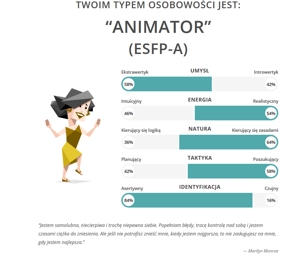 Opis:Osobowość INTP jest raczej rzadka, stanowi tylko 3% populacji, co dla osób z tej grupy typologicznej Pokazuje się dobre, ponieważ najbardziej niemiłą dla nich rzeczą jest to jeśli stają się “pospolici”. INTP są dumni ze swojej inwencji i kreatywności, jak też szczycą się swoją unikalną perspektywą spojrzenia I żywy intelekt. Jednostki o osobowości INTP, znane jako filozofowie, architekci lub professorowie/marzyciele, zasłużyły się pod względem licznych odkryć w dziejach historii.