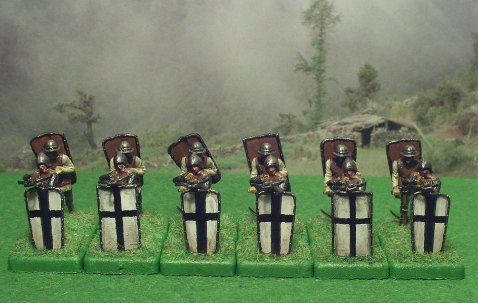 Rozwiązanie jest takie że albo idzie tarcza przodem albo staramy się unikać bliższego spotkania z wrogiem lub omijamy pole widzenia łuczników/kuszników worga (patrz przykład : ja xD ) . A co do kusznika bez tarczy to w sumie ... powinien jakąś mieć jednak :P (sam sobie przypomniałem przykjłądy kuszników z tarczami dzięki też Twoim figurkom Harpag ;P ) .